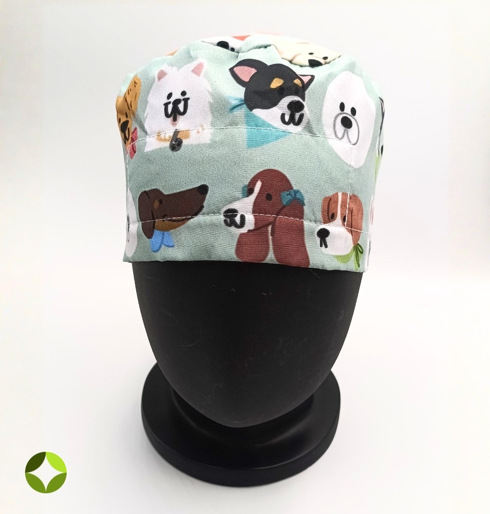 ¡Lleva el amor por los peludos directamente a tu uniforme! Este gorro quirúrgico de corte clásico presenta un tierno y divertido estampado con diferentes caritas de perritos.